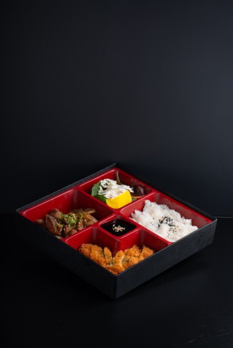 Chicken Katsu Bento Box$22.50Chicken katsu, sweet chicken yakiniku, teriyaki souce, salad, carrot, yellow radish, mayonnaise, rice, spring onion×
